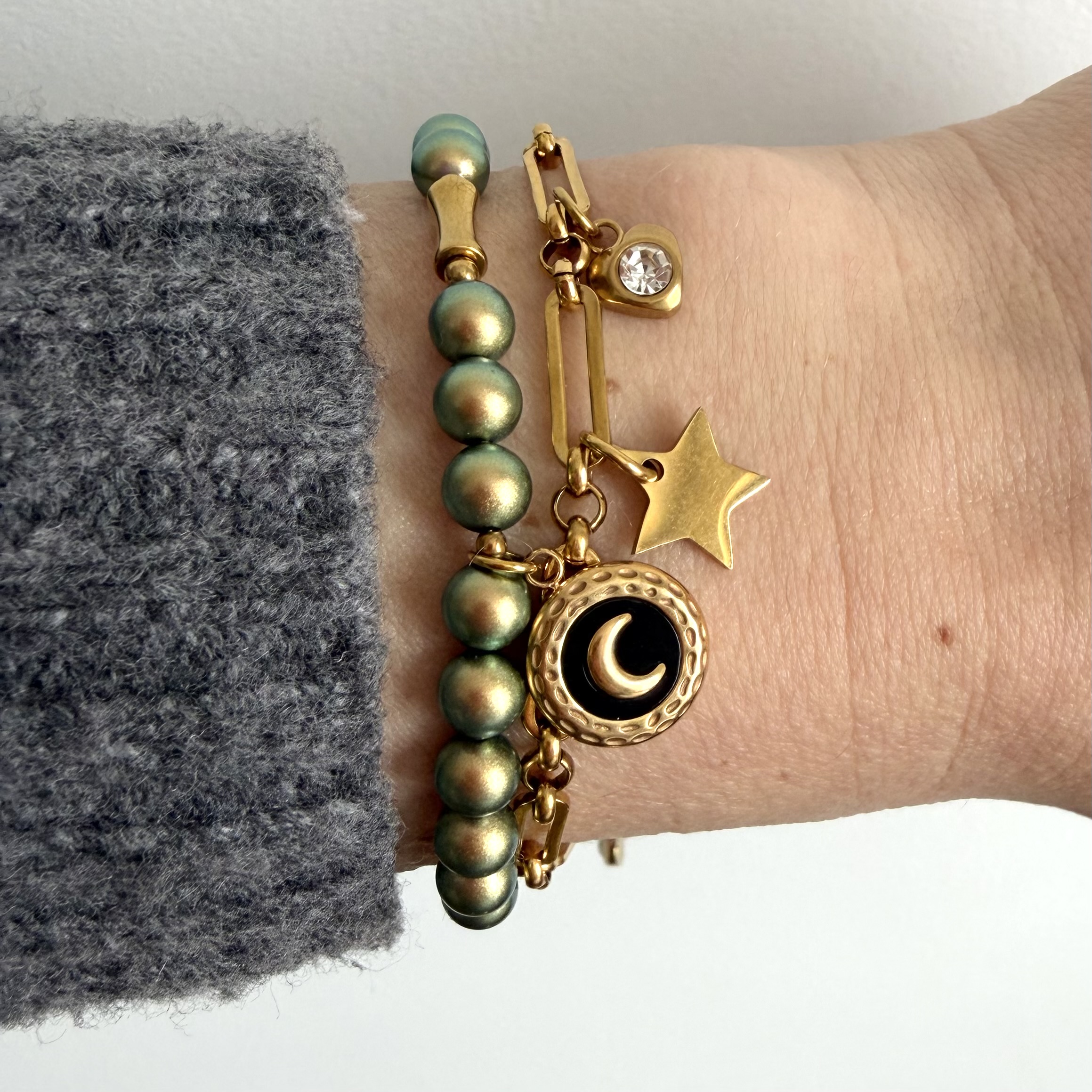 Primero perlų su nerūdijančio plieno detalėmis ir Cirkonio akute